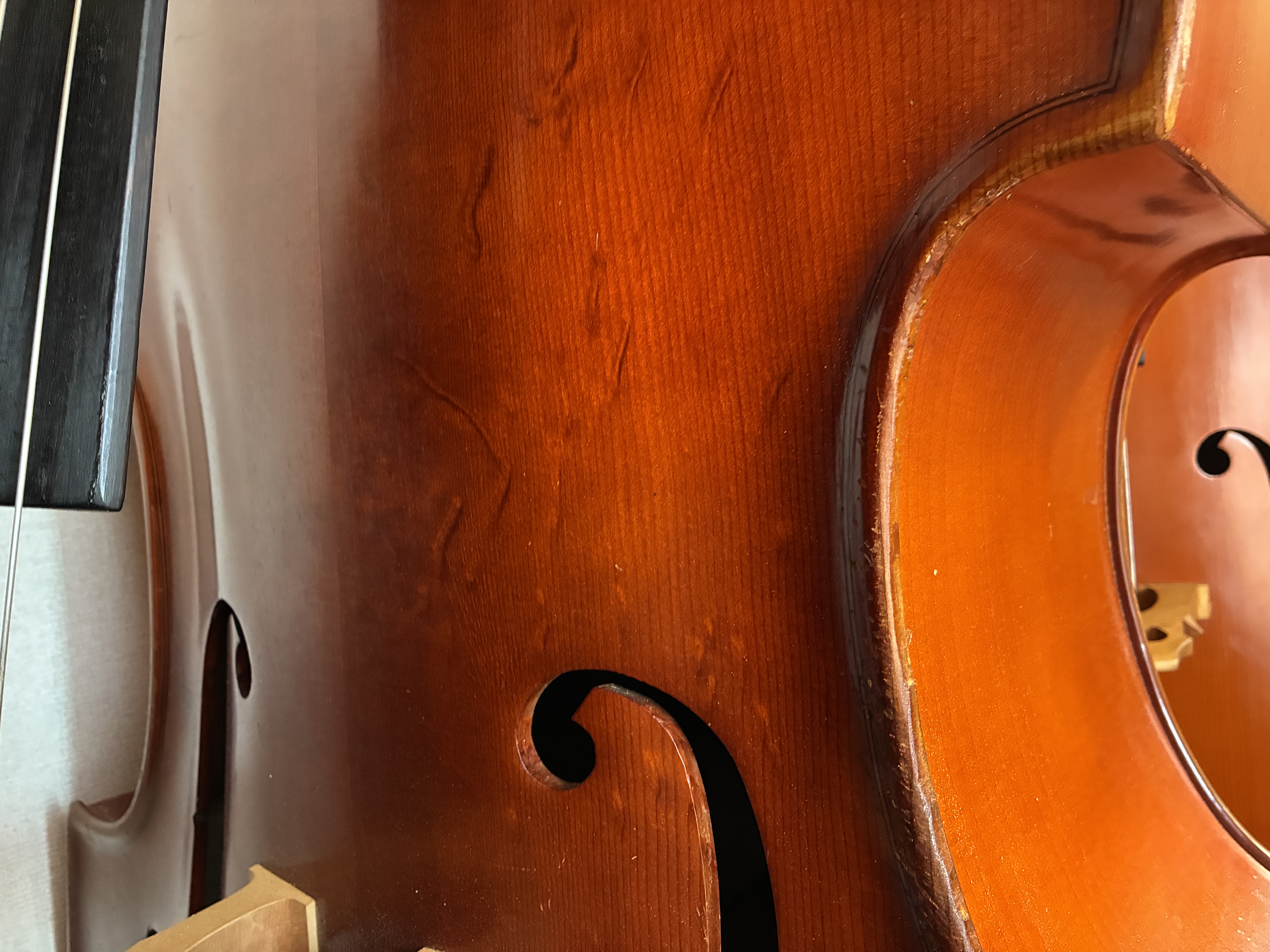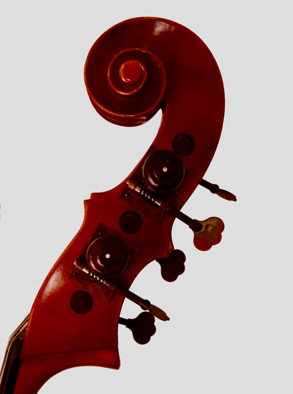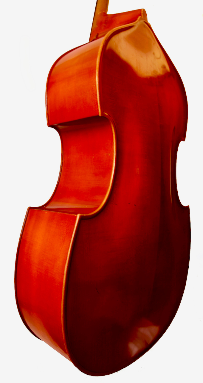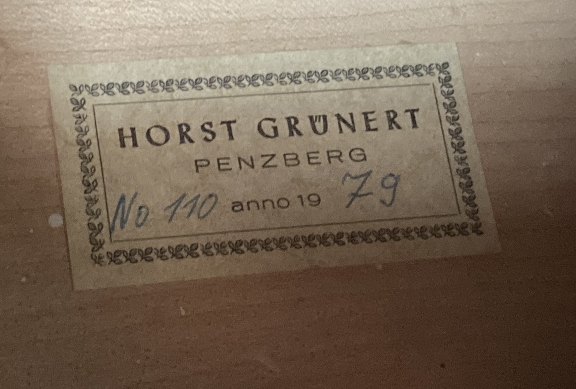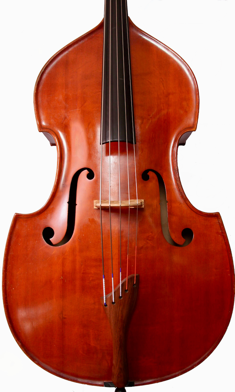Horst Grunertの五弦が入荷いたしました。五弦らしい大型のボディからしっかりと経年を感じる音が魅力で、とても良く鳴ります。ウィーンスタイルのスクロールや、Grunertオリジナルのハープ型テールピースも素敵です。大変おすすめな五弦です。弦長108cm