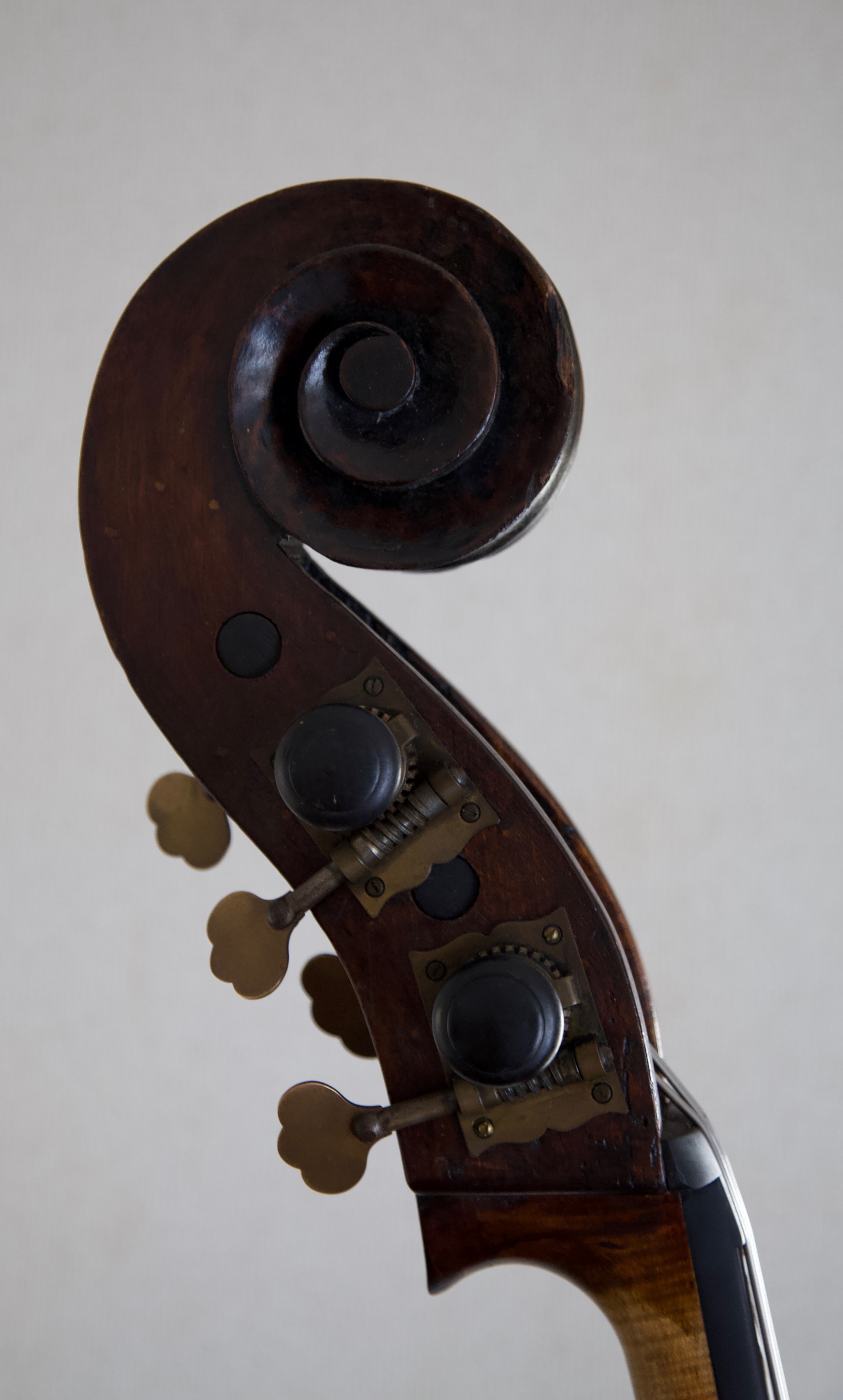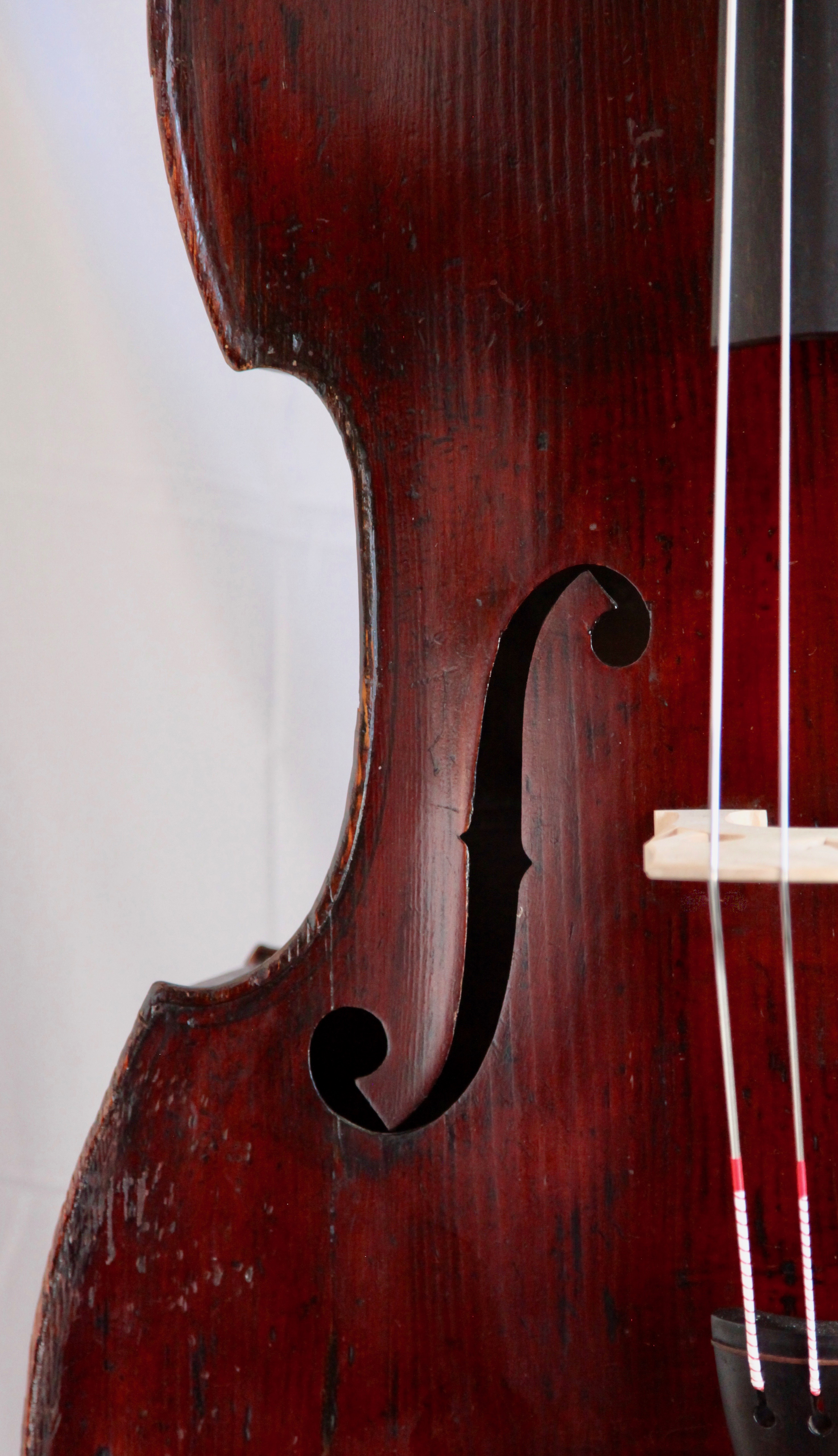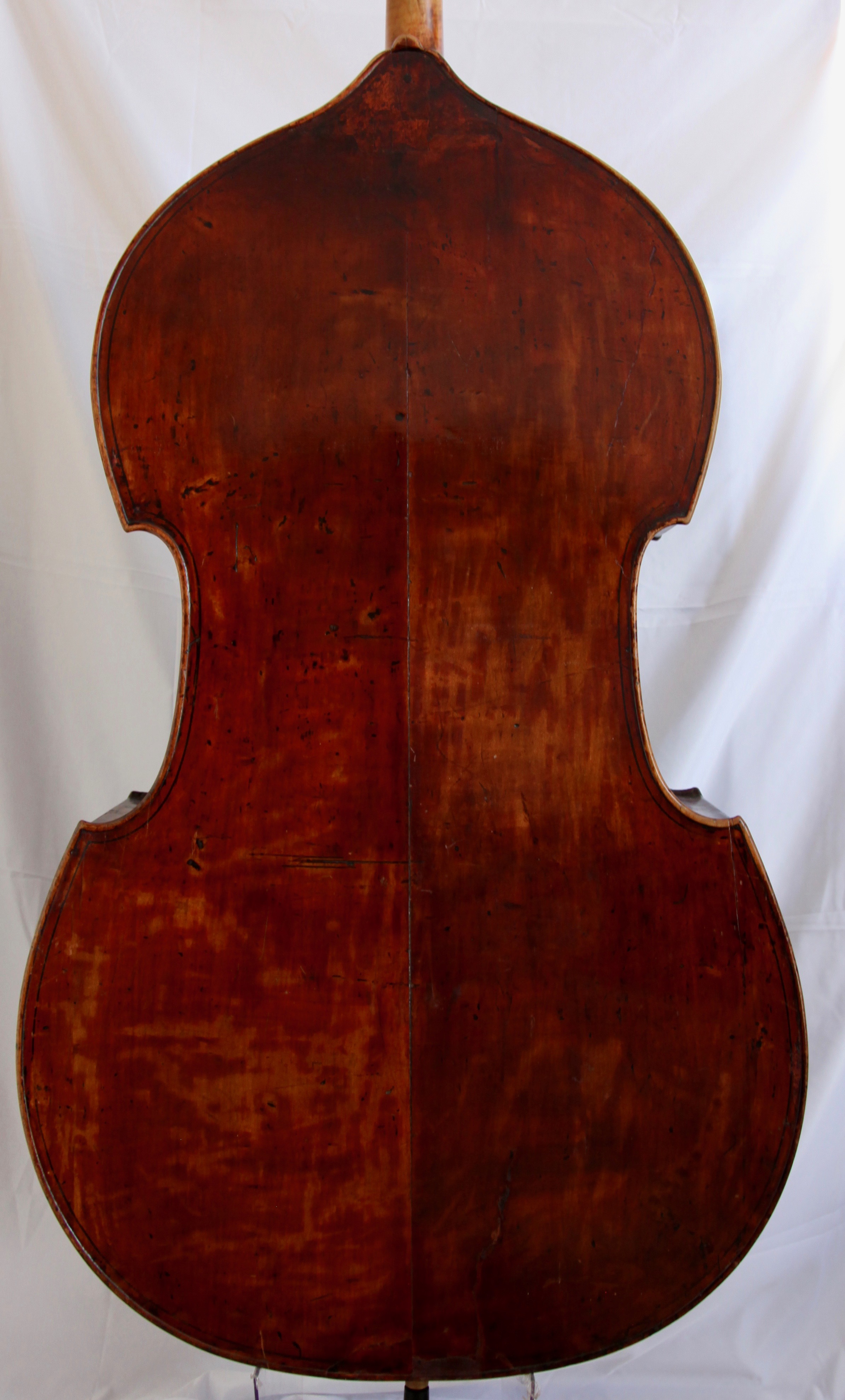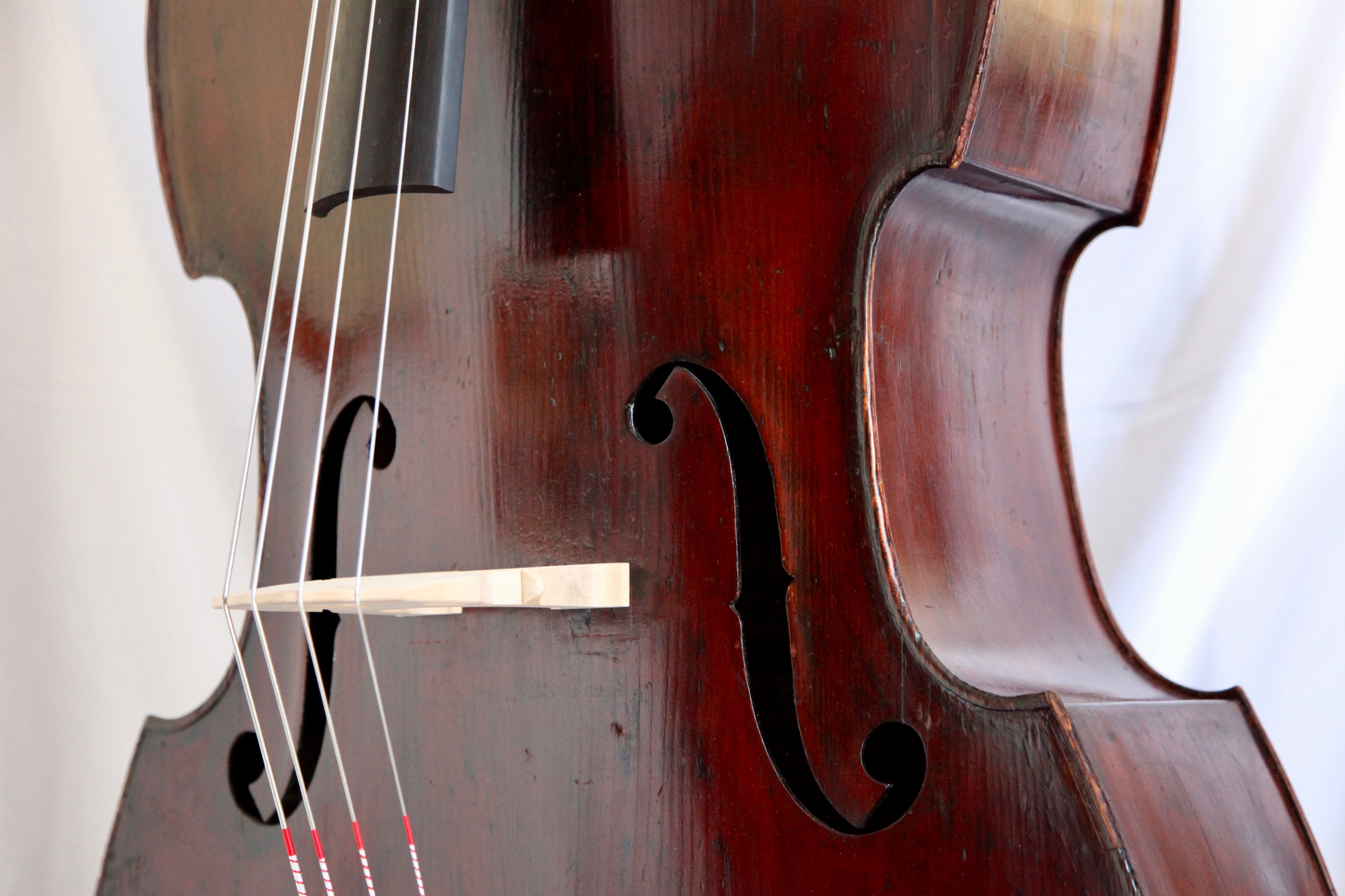 Jacquet-Gand C.1880 ミルクール フランス ミルクールで19世紀後半に活躍した製作家Jacquet-GandことGabriel Jacquetの複数あるモデルの中でも、ガンバシェイプモデルは一目でそれとわかるパーフリングやFホールその他、トレードマークともいうべき特徴を備えています。弾きやすく上から下までパワフルに鳴り、音量だけでなく響きが豊かな点もこの楽器の魅力です。 オーケストラからピチカートがメインの演奏まで幅広く活躍する一台。 弦長106cm